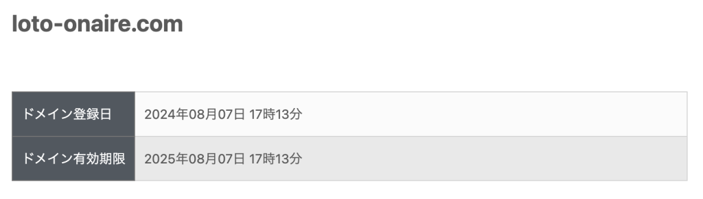ドメイン登録が今年の8月だって!